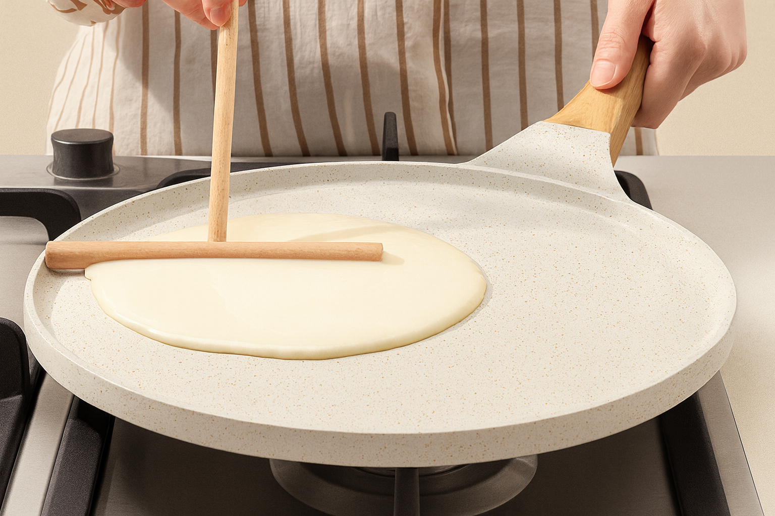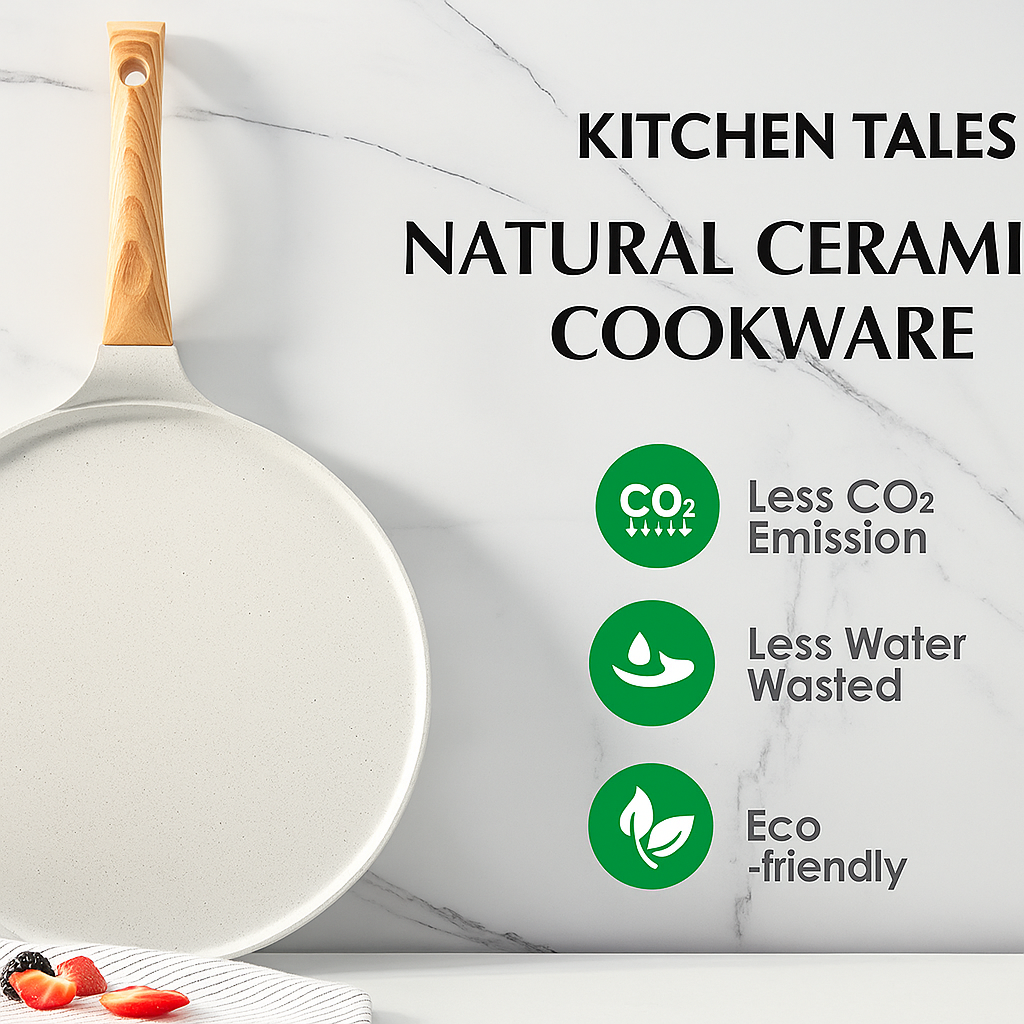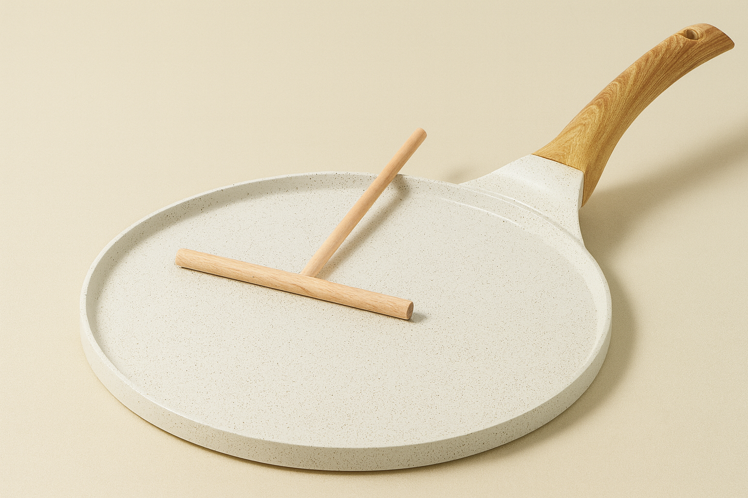 This crepe pan is made with natural, responsibly sourced materials and designed to reduce its impact on the environment. Unlike conventional cookware, its production requires less water and generates lower CO₂ emissions, making it a cleaner, greener option for your kitchen. By choosing this pan, you’re not only creating delicious crepes and flatbreads—you’re also supporting a more sustainable future. Durable, reusable, and built to last, it helps cut down on waste while giving you an eco-conscious way to cook every day.