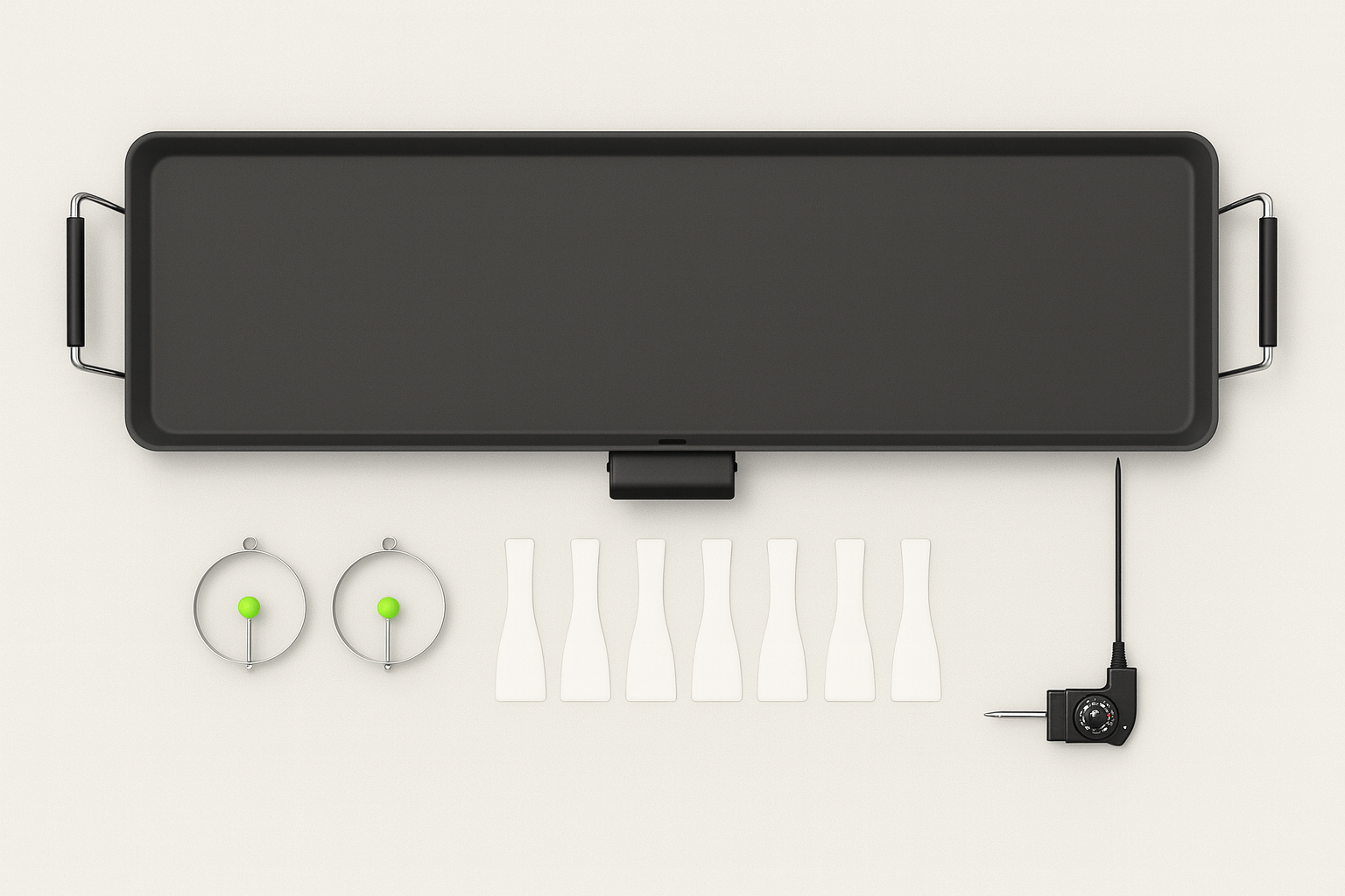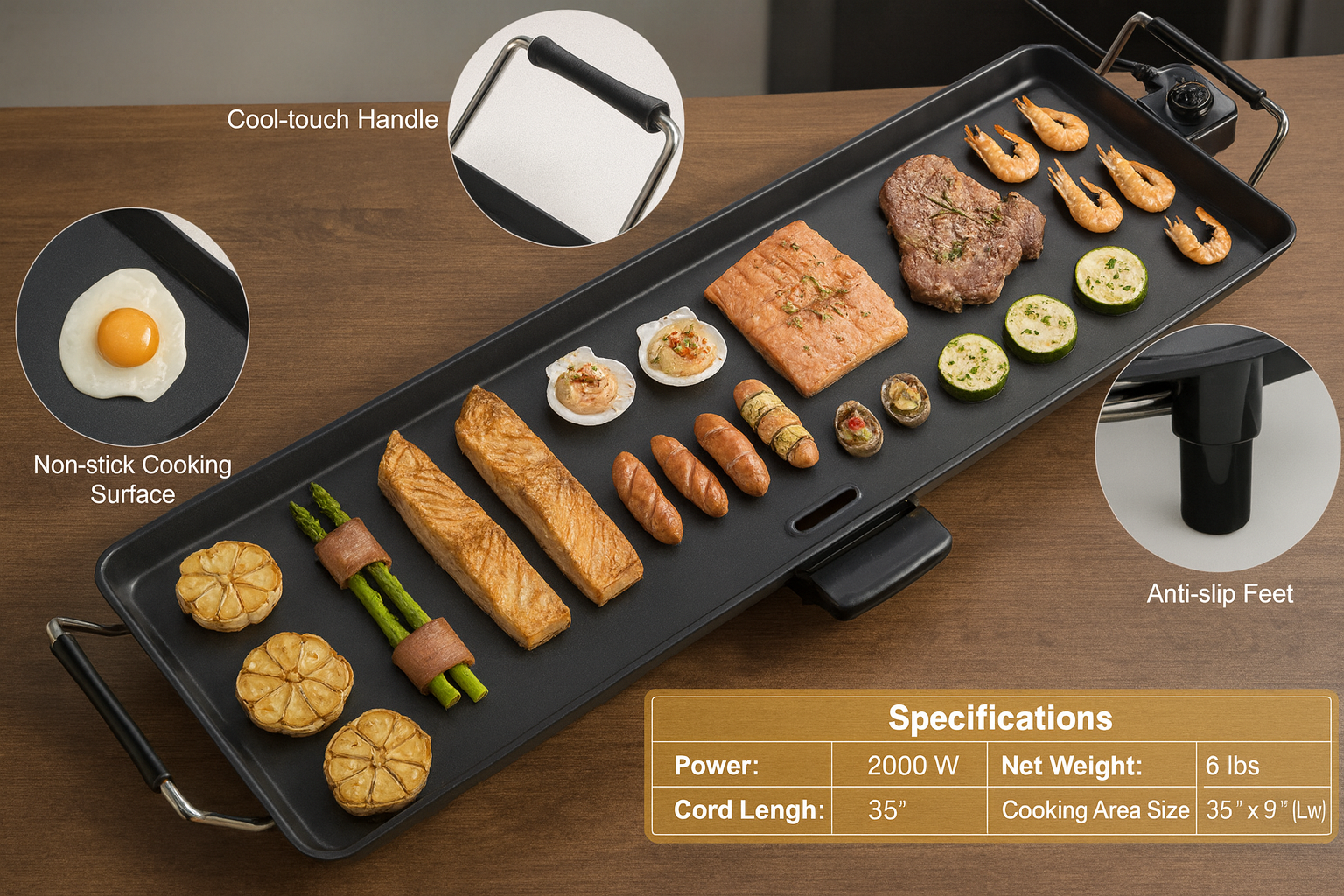 Say goodbye to crowded pans and uneven cooking—this electric griddle’s large non-stick surface heats evenly, cooks multiple foods at once, and cleans up with ease. With adjustable temperature control, included egg rings, and spatulas, it’s a simple way to enjoy restaurant-style meals at home.