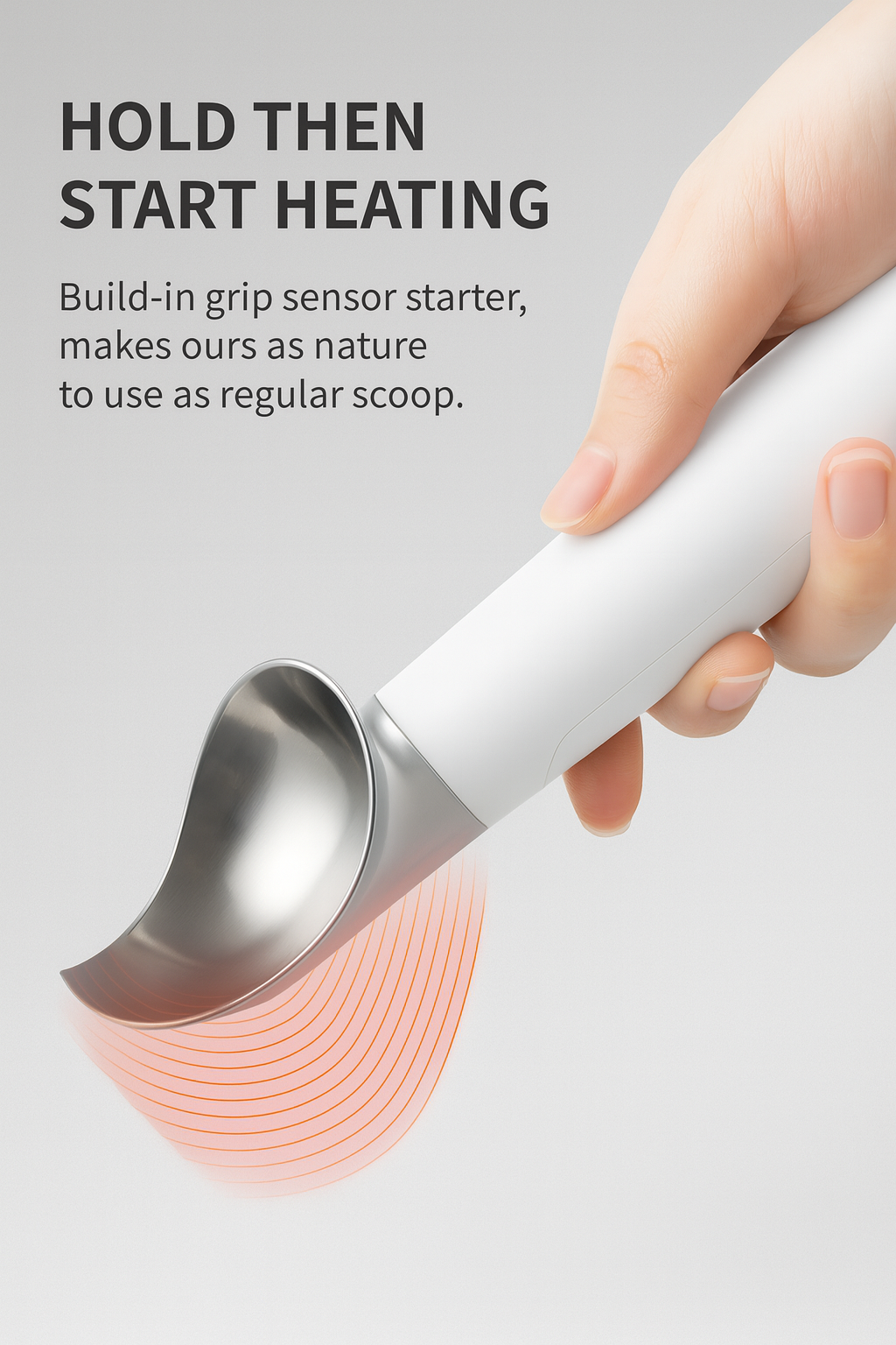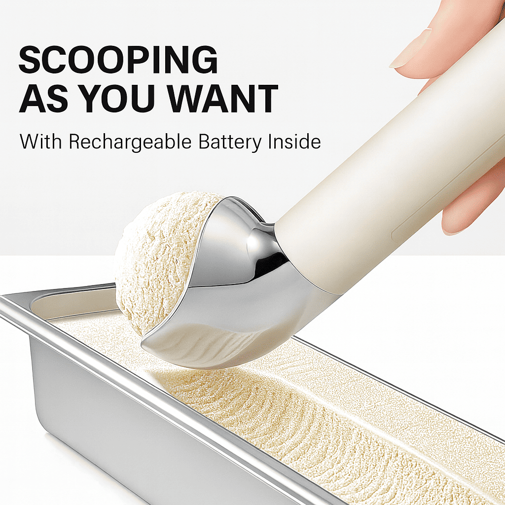 This heated ice cream scoop is designed to make serving frozen desserts effortless. When you press and hold the handle button, the scoop head begins to warm up, reaching up to 50°C. The gentle heat softens even the hardest ice cream, allowing the scoop to glide through smoothly without straining your hand.