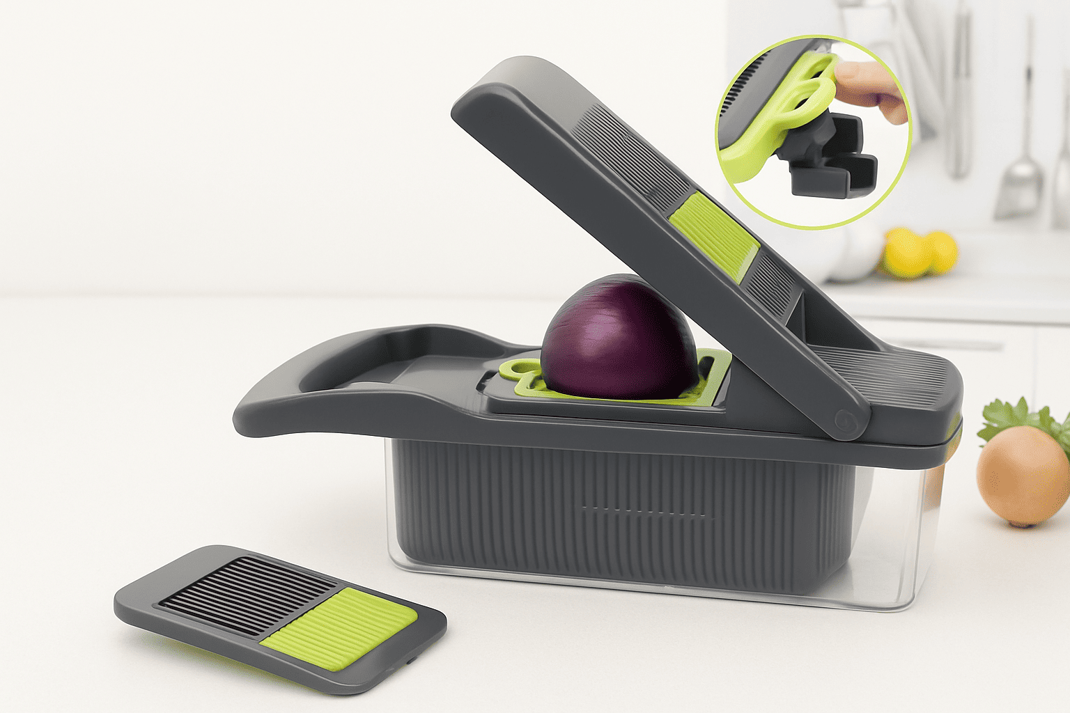 Experience the perfect balance of durability, premium quality, and ergonomic design with this multifunctional vegetable chopper. Built with stainless-steel blades and a detachable design, it delivers precise cuts while ensuring safety and convenience. Easy to clean, safe to use, and crafted for everyday efficiency — this chopper turns meal prep into a quick, seamless, and professional experience.